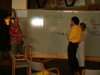 The Palo Alto KnOwhere Store was opened in November of 1997. For the most part it has been in a place-holding mode. We were way over extended, financially, when we built it and 1998 was (unexpectedly) a very bad year for us in terms of cash flow. In addition, the Silicone Valley market was totally new to us - it was wise to proceed slowly. The Palo Alto KnOwhere Store, also, represented our first attempt to build a full venue KnOwhere concept. We had only a mental model of what this should be. The Hilton Head Store is small. Cambridge was always designed for and dedicated primarily for the practice of DesignShops. This is one reason why it made sense to sell the facility to EY when their ASE DesignShop business grew. Neither Hilton Head nor Cambridge, as fine as they are, informed us much in terms of what a fully functional KnOwhere Store in a place like Silicone Valley wanted to be. Slowly, the KnOwhere concept has taken hold in Palo Alto. In late October we are doing a DesignShop here for a major member of the MG Taylor ValueWeb - and in November - an Invitational DesignShop mostly for the local KnOwhere ValueWeb: individuals and organizations we have worked with over the last two years. This DesignShop is a trade: each participant team will bring a problem they want to solve and in solving it, and working with us on our problem, they will help us better understand the role of this KnOwhere (as a Marketplace), as well as, the whole KnOwhere concept. So, a great deal of activity at Palo Alto this month is focused on preparing for these two DesignShops, the work that will surly follow from them and practicing the new ideas that will come out of the KnOwhere Store DesignShop.
