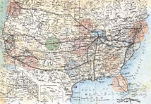 A hand drawing, over a US map, of the major AmTrak lines across the US. These are underdeveloped corridors which represent. a major Real Estate and transportation opportunity.