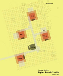 This project is my personal gift to Gail. It is an addition to our home in California. It will be built as soon as my personal cash flow allows it which remains dependent on the financial success of MG Taylor. This is a private work station and garden with a view of the ocean through a mile of redwood trees.