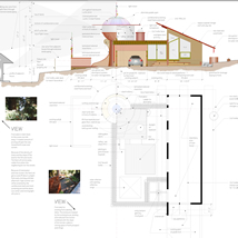 This is an interesting project for many reasons. It is an attempt to create a sub-regional planning capability employing the Master Planning method on a grass roots level. It makes use of an existing property and two buildings with the intent to add more prefabricated “rooms” all under a wooden Armature “tent” and viewing loft.
