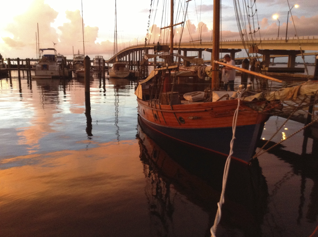 | Participating in this work with Armour and William I re-realized four things: The first is no matter how important they are, not to let externalities interfere with keeping CAMELOT sailing. As important as MG Taylor is - and the work is important - I cannot control the factors which will bring it success. I can keep CAMELOT whole. The second is the value of hands-on work in a world of abstractions and the outsourcing of everything. The sun was hot and the work demanding yet at the end I felt ten years younger, in mind and body for my effort. The work necessary to keep CAMELOT is part of the reward not the cost. Third, the value of getting physical which is both a necessity and consequence of sailing CAMELOT. We live in a culture that goes to extremes to eliminate physical effort instead of making physical work a contemplation and exercise of the body/mind. Doing so, we lose our connection to the Earth and ourselves. I almost failed CAMELOT by putting Her behind my other work and I lost a measure of my edge and productivity in doing so. Both CAMELOT and the enterprise lost as did I. Without realizing it, I let myself be “talked out of” a stake I had driven into the ground to keep this one piece of art whole and properly employed. Had the rest of my vision also been adulterated? I left CAMELOT, back in the water, and will return soon, reinvigorated to prevail with CAMELOT’s and with my life’s mission. |