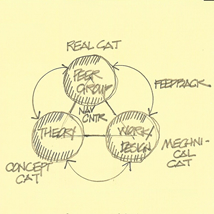 | There is a strong tendency for specialized communities to “two-cat” according to the cognitive bias inherent in their work focus. Academics, for example are inclined to study the “real” cat and build a theoretical “concept” cat. They often ignore the learning inherent in making a “mechanical” cat. Craft and applied arts workers usually study the “real” cat thoroughly while applying what they observe to artifacts of various kinds. They have a habit of eschewing theory useless and, if you can judge from the common attitude, corrosive to the act of doing real work. |
