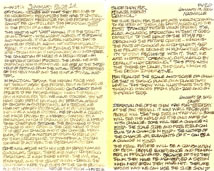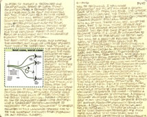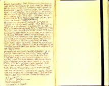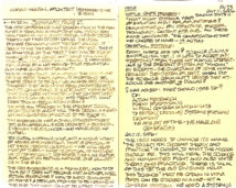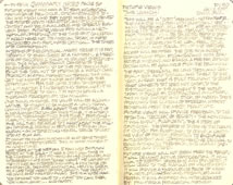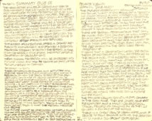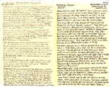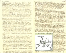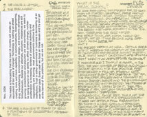 | As is usual with my Notebooks, pages are filled in on the right hand page - with a few exceptions where both sides are employed in real time - and then, later comments are placed on the left hand pages. A Summary pieces, written near the end of the Notebooks time period, fills up the remaining space. This is both summing up of the entire Notebook and usually a comment on the material on the right hand page. I “retire” a Notebook only when all of the space is filled. This Notebook is now finished - only the fifth of the 20 Notebooks I have started since September 11, 2001 (although there are many which are lacking a few pages of being “done”). |