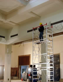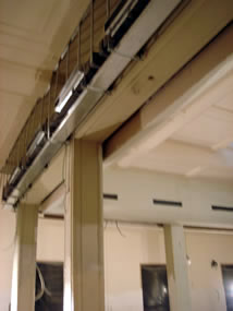 The new HVAC system will be shrouded by curved sheet rock elements. this work is now about 50% done and will be complete this week. |