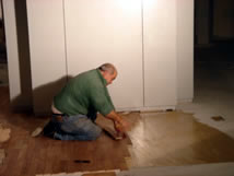 | Monday, first thing we will clean up the site including getting under the protective cover over the new wood floor to remove any materials that may have penetrated and accumulated there. |