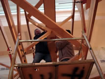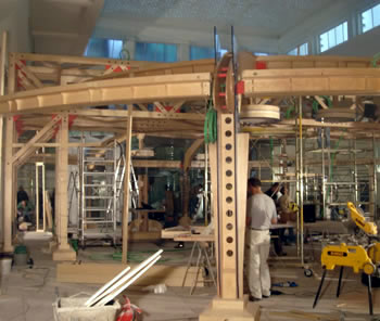 | Assuming shipment #3 arrives on schedule we will start placing the masts of the suspension system and erecting the Center Master’s POD this weekend. Next Sunday/Monday, we will move the mini-Navcenter on to the third floor so that on site work can begin on the January meeting and the setting up of the NavCenter and Unimanagement Training facilities. This gives us the following week to set the spars and rig the wire rope of the suspension system before the Christmas break. |
