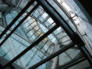 Permasteelisa has removed the protection from the glass balconies and stairs to the 3rd floor. I call this shot “looking up” and perhaps things are beginning to do this. The stairway is spectacular but is is going to be a problem for half of the Human population. The beauty-utility equation is not always easy to balance.